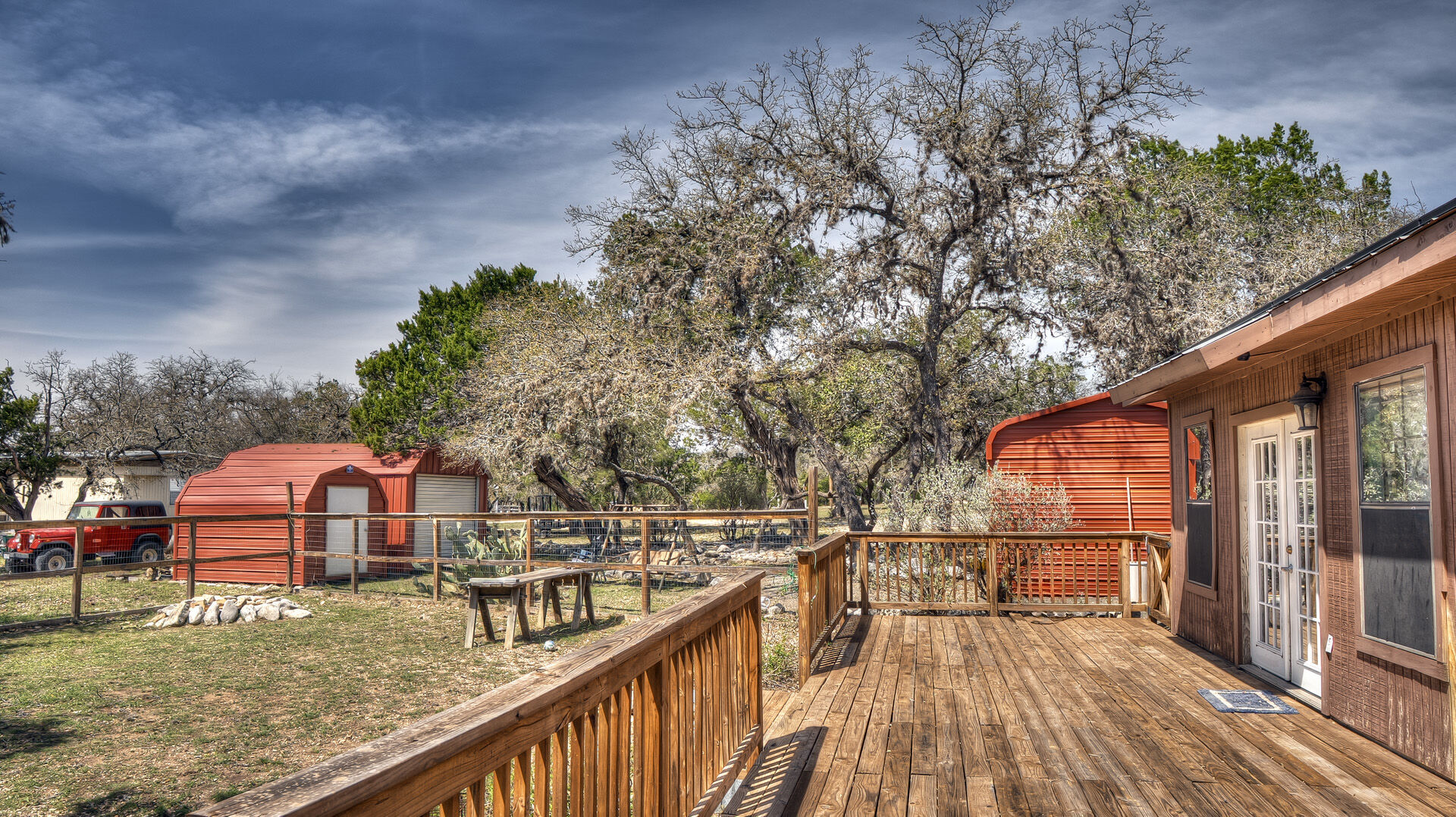 Discover Hill Country charm in this beautifully updated brick home nestled on a peaceful cul-de-sac in the gated community of Twin Forks Estates. Featuring 2 spacious bedrooms and 2 bathrooms, this home is situated on just under an acre with mature Live Oaks, Cenizo, Junipers, and Mountain Laurel, creating a tranquil, natural setting. The updated kitchen gives elevated Frio River vibes and features a gorgeous tile backsplash, all-new countertops, cabinetry, sink, and stainless-steel appliances—perfect for any home chef. The bright and airy main living area centers around a cozy wood-burning fireplace, ideal for relaxing evenings. Both bedrooms offer generous space for comfort and flexibility. A versatile bonus room addition serves as a second living area, home office, or easily convert it into a third bedroom to suit your needs. Enjoy outdoor dining or quiet mornings on the spacious deck, taking in views of the singing birds and roaming deer. The large, fenced backyard offers a secure place for pets, with plenty of room to add a shop or guest quarters beyond. Additional features include an 8x10 metal storage building for tools and lawn equipment, a detached 12x20 carport with extra storage, and a separate 10x14 garage to keep your vehicles protected. Property owners in Twin Forks Estates enjoy exclusive access to one of the most coveted stretches of the Frio River—ideal for swimming, fishing, or simply taking in the serene surroundings. Experience the perfect blend of privacy, natural beauty, and community amenities in your new Hill Country home!