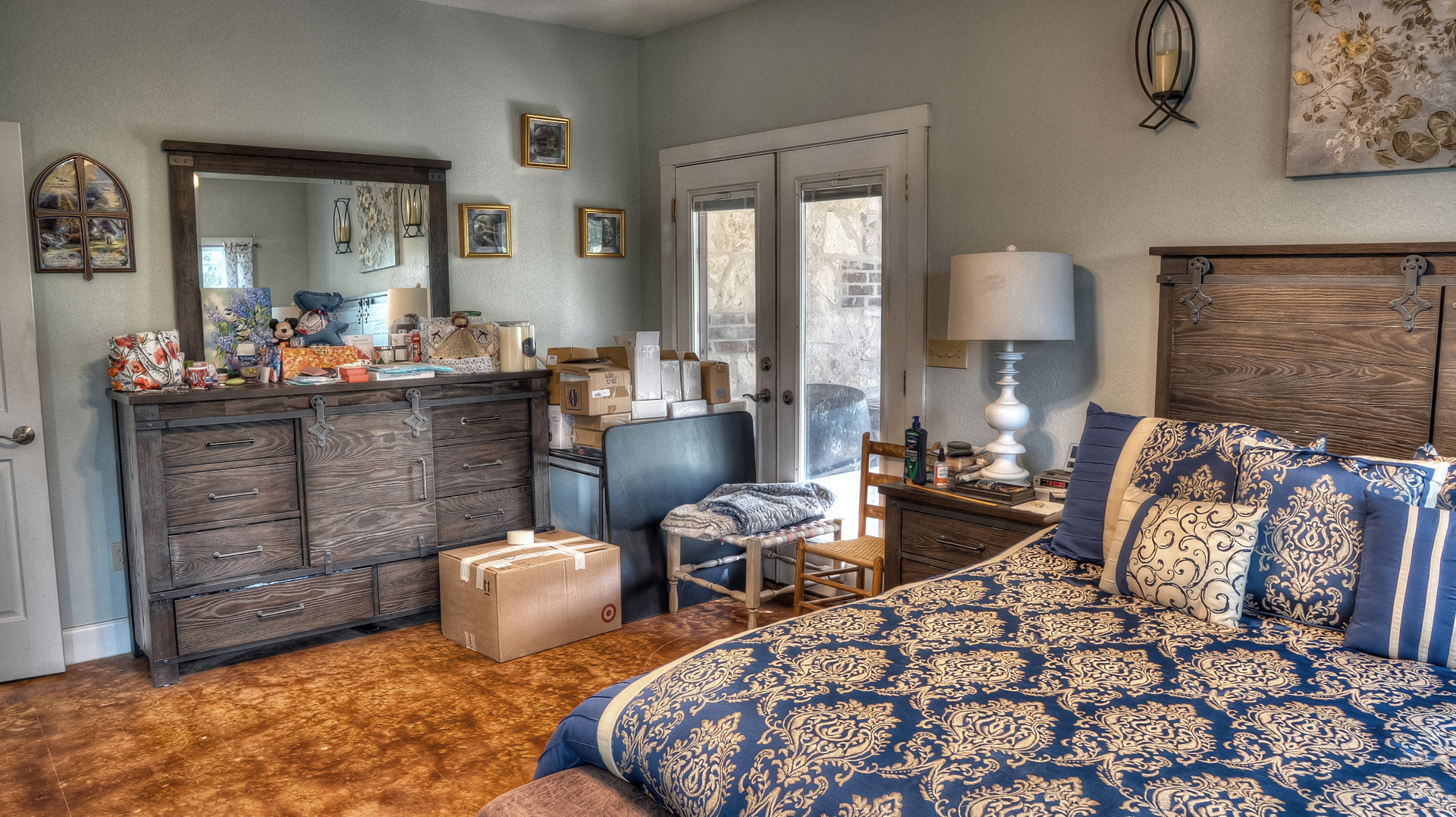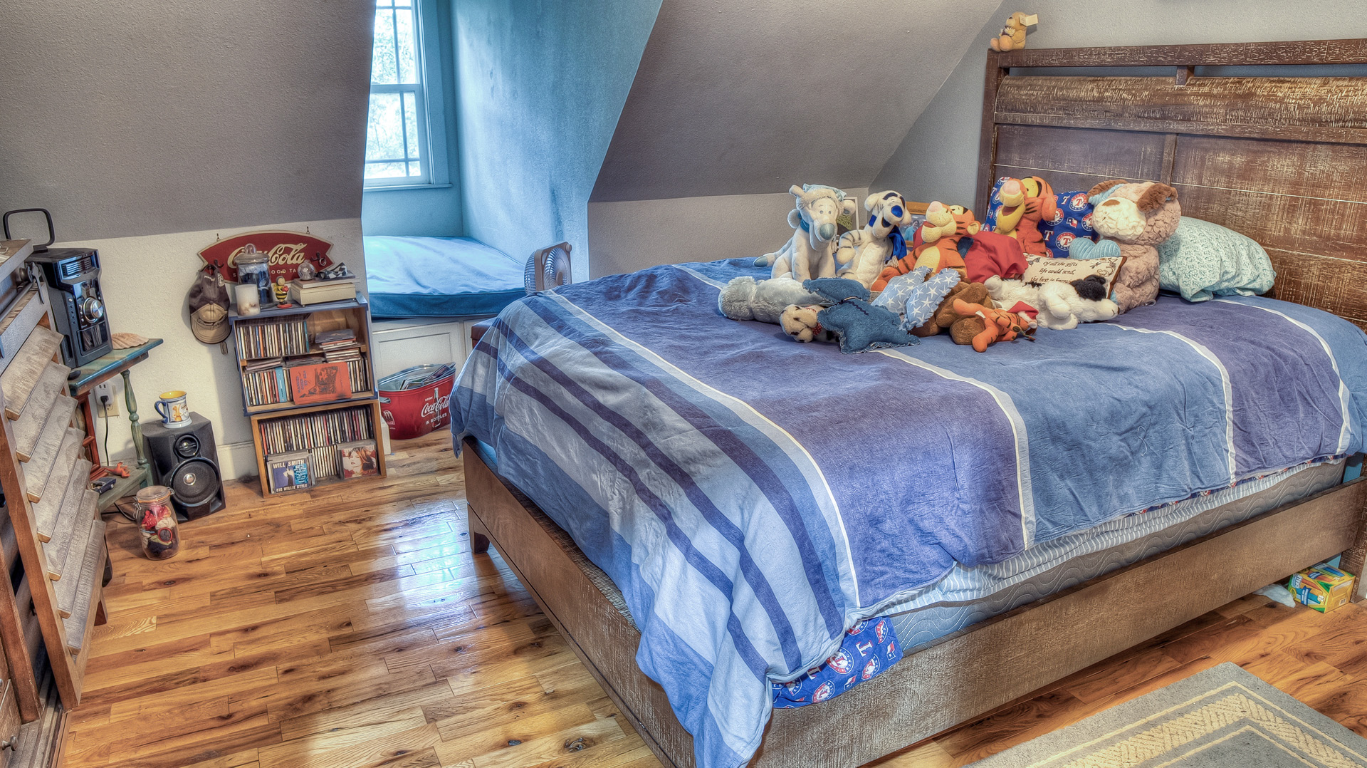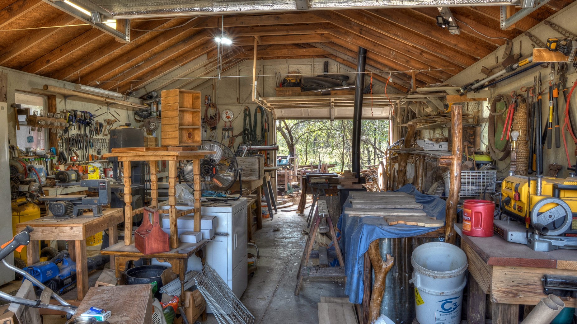 Experience the best of country living in this beautiful, spacious home set on a sprawling 7.49 acre estate. Built in 2003, this two-story home offers five bedrooms and three and a half bathrooms across 3,144 square feet of living space. Highlights inside include high ceilings, stained concrete floors, whole-home audio, a breakfast nook, formal dining room, a downstairs bedroom/office, two bedrooms with a bathroom upstairs, and another bedroom with ensuite bathroom above the garage. The large primary suite features French doors opening to the back patio and an ensuite bathroom with a walk-in closet, soaking tub, tiled shower, and dual vanities. There’s plenty of storage with indoor closets, a partially finished attic, an attached two-car garage, a portable storage building, a detached one-car garage, and a workshop. The level, fenced property is ideal for horses or 4H/FFA agricultural projects. A circle drive, a garden, and an open field grace the front of the property, while numerous oak trees provide shade around the home. Utilities include water from two wells, underground electricity, and an RV hook-up. Select furnishings are included. No deed restrictions or HOA.