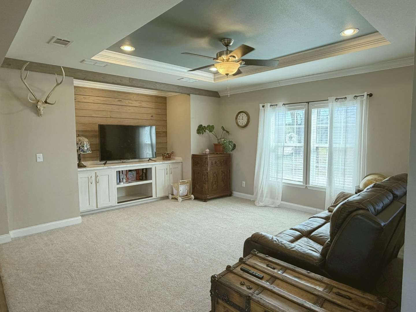 Introducing a well-maintained 3 bedroom, 2 bathroom manufactured home situated on nearly two acres. Constructed in 2016, the residence offers 1,800 square feet of living space with a split floorplan, high ceilings, new carpeting in both the living room and primary bedroom, ample storage throughout, and abundant natural light. The modern kitchen is appointed with stainless steel appliances and granite countertops. The primary bedroom includes coffered ceilings, a walk-in closet, and an ensuite bathroom featuring dual vanities, a soaking tub, and a walk-in tiled shower with glass surround. The secondary bathroom is equipped with a shower/tub combo. An oversized utility room provides a sink, additional counterspace, and enough area to accommodate an extra refrigerator or freezer. Exterior amenities include a detached 20'x22' carport with an attached storage area for lawn equipment, a new weather-proof shipping container, and a smaller storage building. A 680' deep water well was drilled and equipped in 2021. A second shallow water well with storage tank is also in place. Enjoy entertaining in the large backyard with hill country views and majestic sunsets! No HOA or annual dues. Listed at $250,000 Survey Sellers Disclosure Flood Map Floor Plan Statement of Location
